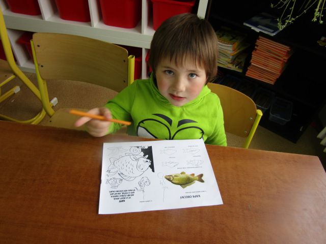 1) Nalepení samolepky Kapra obecného na pracovní list